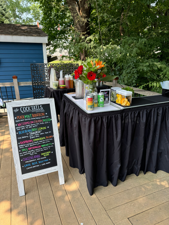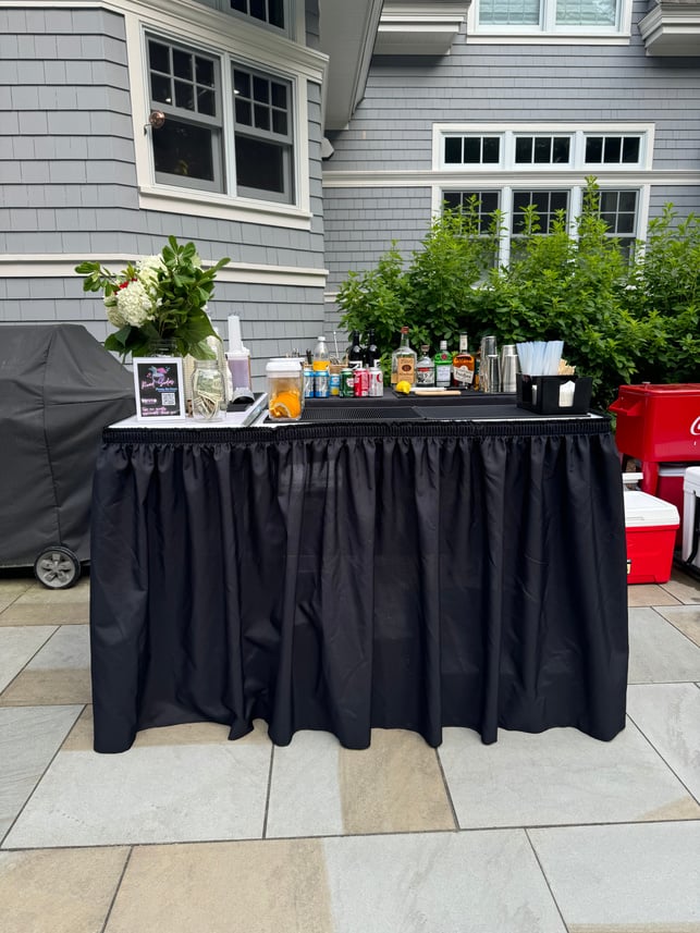 Bar setup, Bar equipment, Compostable cups, straws, & napkins, Staffing, Ice,