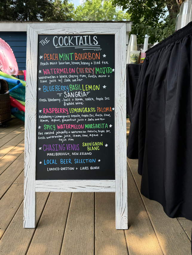 Here are several examples of seasonal drink menus we offer; however, the options are extensive. We can create a custom signature drink menu tailored to any event or theme. Our cocktails are crafted from fresh ingredients, and every component is handmade, ensuring a truly unique and flavorful experience.